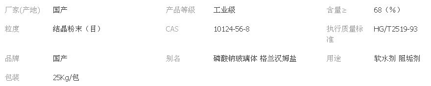 六偏磷酸鈉作為軟水劑,如用在染整上,起到軟水作用;還作為阻垢劑,廣泛應(yīng)用于EDI(樹脂電滲析)、 RO(反滲透)、 NF(納濾)等水處理行業(yè)。