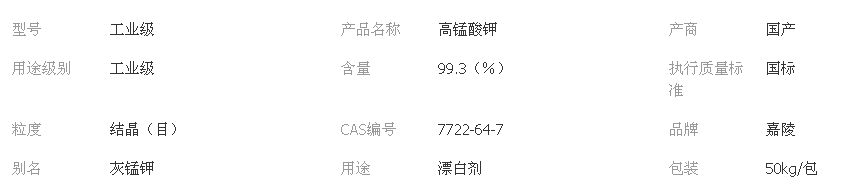 1、高錳酸鉀為深紫色細(xì)長(zhǎng)斜方柱狀結(jié)晶,有金屬光澤。溶于水、堿液,微溶于甲醇、丙酮、硫酸